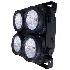 Blinder LED jest urządzeniem zbudowanym z czterech 100-watowych modułów LED. Zapewnia doskonałą halogenową imitacje, dzięki czemu można cieszyć się tradycyjnym efektem halogenowym, łącząc wszystkie zalety technologii LED: niskie zużycie energii, niskie zużycie ciepła, dużą żywotność produktu i dodatkową funkcjonalność. Dodatkowo blinder LED może być sterowany za pomocą DMX512 i przy małym zużyciu energii, można bezpiecznie połączyć ze soba kilka urządzeń.