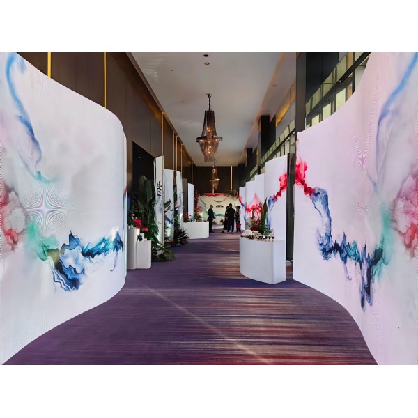 Gloshine CF Series to elastyczny ekran LED o doskonałej jakości, umożliwiający prezentację wysokiej jakości treści dzięki gęstości pikseli na poziomie 2.6 mm. Jego główną cechą jest możliwość łączenia kabinetów pod kątem 30°, co pozwala na tworzenie instalacji w formie litery „S” lub kolumny LED zaledwie z 12 kabinetów, o minimalnej średnicy 1.9 metra.